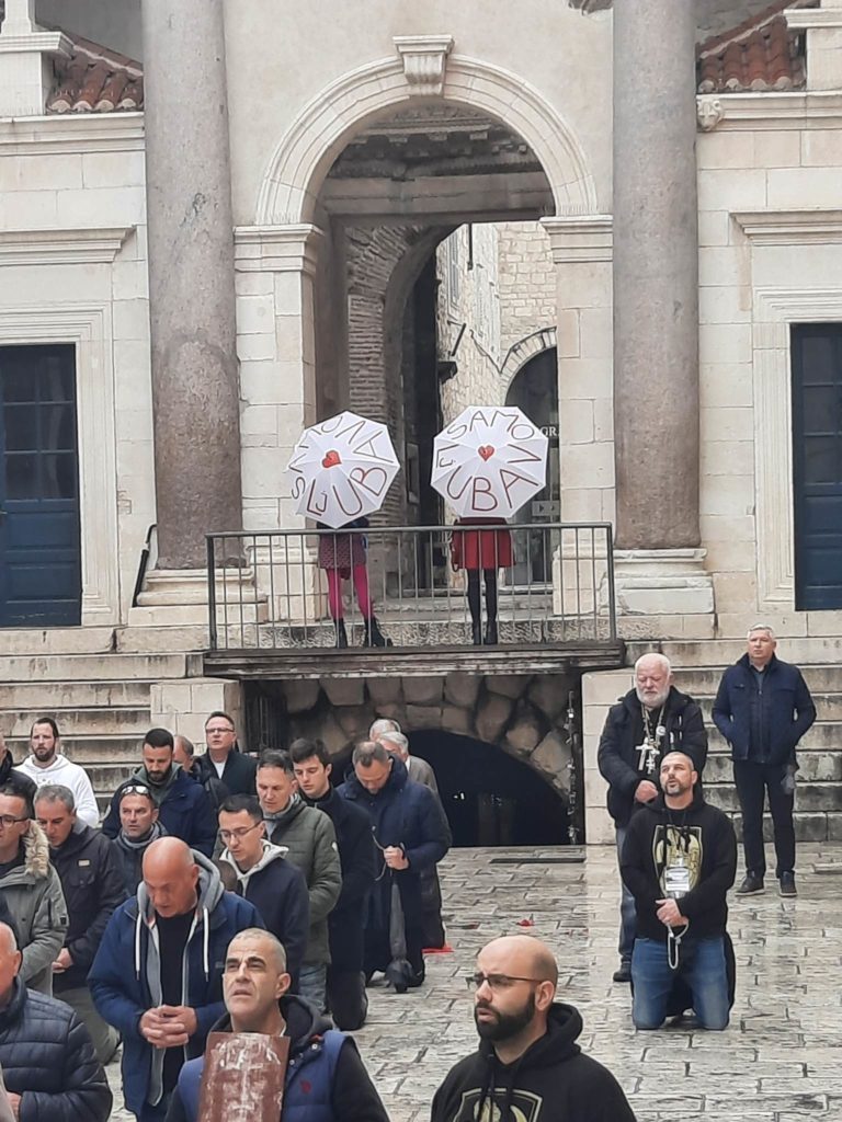 Na javnim prostorima, na glavnim gradskim trgovima naše zemlje, svake prve subote u mjesecu već tri i pol godine muškarci kleče i mole za: predbračnu čistoću i čednost žena u oblačenju i ponašanju, za prestanak pobačaja, da muškarci postanu duhovni autoriteti u obitelji, za obnavljanje tradicionalnih brakova i katoličkih vrijednosti te za ostale nakane.